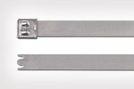 Kabelbinder MBT aus rostfreiem Edelstahl SS316L (V4A). Unlösbarer Verschlusskopf. Gegabeltes Bandende für leichtes Einschlaufen. Hervorragende chemische Beständigkeit. Korrosions- und witterungsbeständig. Hochtemperaturbeständig. Nicht brennbar. Metallkabelbinder sind prädestiniert für alle Bereiche mit hohen Anforderungen an Haltekraft, Beständigkeit und Brandschutz. MBT Metallkabelbinder werden in der chemischen Industrie, auf Ölplattformen sowie im Schiffbau, Bergbau und Schienenfahrzeugbau eingesetzt. Die MBT-Serie gilt als Garant für Sicherheit bei der Lichttechnik im Bühnen- und Messebau.