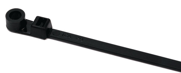 1-teiliger Befestigungsbinder mit Schrauböse am Kopf. Schnelle und einfache Installation durch Anschrauben. Die einteiligen Befestigungsbinder verfügen über eine eingebaute Befestigungsbohrung und eine Öse, um Kabel schnell und einfach zu befestigen. Im ersten Schritt wird der Kabelbinder einfach mit einer Schraube oder Bolzen an einer Platte befestigt, bevor im zweiten Schritt die Kabel hinzugefügt werden können.