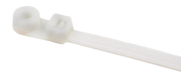 1-teiliger Befestigungsbinder mit Schrauböse am Kopf. Schnelle und einfache Installation durch Anschrauben. Die einteiligen Befestigungsbinder verfügen über eine eingebaute Befestigungsbohrung und eine Öse, um Kabel schnell und einfach zu befestigen. Im ersten Schritt wird der Kabelbinder einfach mit einer Schraube oder Bolzen an einer Platte befestigt, bevor im zweiten Schritt die Kabel hinzugefügt werden können.