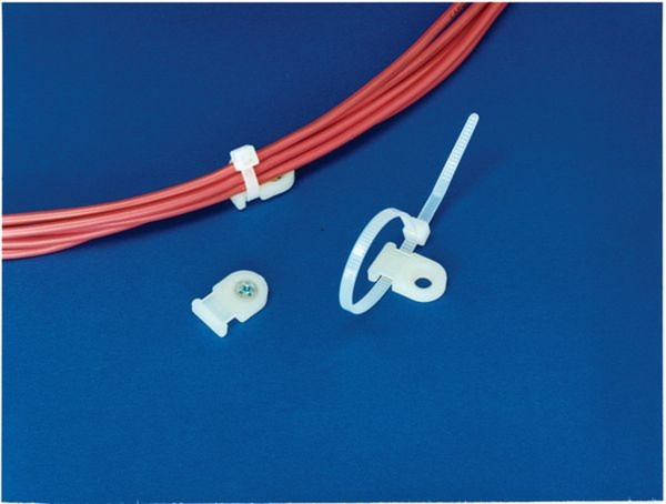 Zwei-Wege-Einschlaufrichtung des Kabelbinders. Einfach zu installieren mit einer Schrauben oder einem Spreizniet. Sichere Halt, auch in Verbindung mit Vibration. Diese Befestigungssockel können aufgrund ihrer flachen Form in Anwendungen mit begrenzten Platzverhältnissen verbaut werden, wie z. B. im Telekommunikationsbereich oder in Schaltschränken.