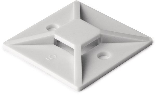 Selbstklebender Befestigungssockel. Synthesekautschukkleber für universelle Anwendungen. Größtmögliche Klebefläche. Zur schnellen und flexiblen Montage kann der Kabelbinder von vier Seiten eingeschlauft werden. Die Haupteinsatzgebiete der selbstklebenden MB Sockel befinden sich im Schaltschrankbau, in der industriellen Serienfertigung und in Bereichen, wo die große Bodenplatte eine stabile Befestigung gewährleisten soll, aber eine Schraubbefestigung nicht möglich ist.