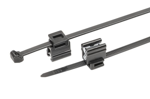 2-teiliger Kabelbinder mit EdgeClip, vormontiert. Der Kopf des Binders kann in optimale Bündelposition gebracht werden. Typ EC9, EC10, EC21 und EC22 für Bündeldurchmesser ab 1 mm. Für Kanten von 1 - 3 mm. Elemente aus der EdgeClip-Serie sind eine sehr gute Alternative überall dort, wo Lochbohrungen und Schweißbolzen nicht realisierbar und Kleber aufgrund höherer Temperaturen nicht einsetzbar sind. Anwendung findet die EdgeClip-Familie zur Bündelung und Befestigung von Kabelbäumen und Schläuchen überwiegend in der Automobil-, Bau- und Elektroindustrie sowie in der Kabelbaumfertigung.