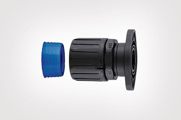 Einteilige Schnellverschraubung. Hohe Zugfestigkeit. Sehr gut beständig gegen Lösungsmittel und Öle. Halogen-, schwefel- und phosphorfrei. Gerade, drehende Flanschverschraubung inkl. Schlauchdichtung und Dichtungsscheibe. Erfüllt IP66, IP67, IP68 und IP69k.