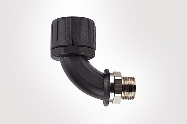 | Kurzbeschreibung | 90° Kunststoffverschraubung mit drehendem Außengewinde schwarz |