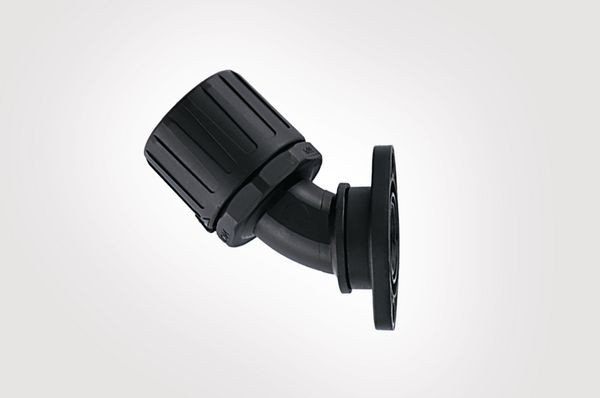 Einteilige Schnellverschraubung. Hohe Zugfestigkeit. Sehr gut beständig gegen Lösungsmittel und Öle. Halogen-, schwefel- und phosphorfrei. 45° drehende Flanschverschraubung.