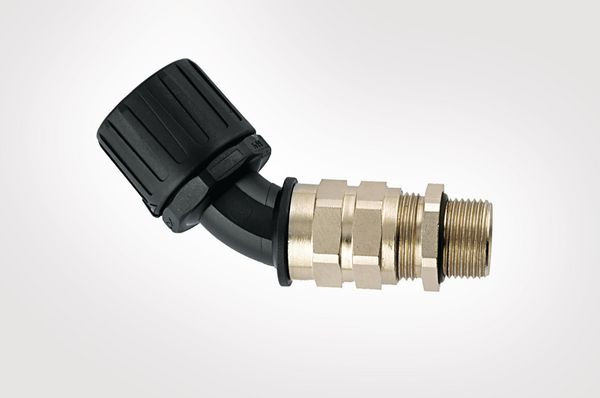 Zugentlastung. Kabelabdichtung bei IP68 und IP69k. Hohe Zugfestigkeit. Sehr gut beständig gegen Lösungsmittel und Öle. Halogen-, schwefel- und phosphorfrei. 45°-Verschraubung mit Zugentlastung und Kabelabdichtung.