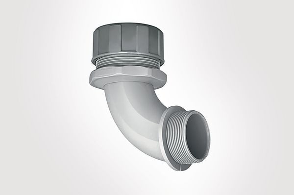 | Kurzbeschreibung | 90°-Kunststoffverschraubung mit starrem Außengewinde, 16 mm, M20, grau |