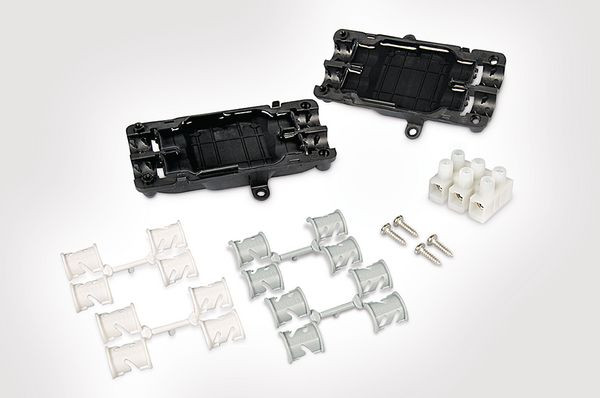 Formschale: zweiteilig, schwarz, wiederöffenbar, incl. Zugentlastung, flammenhemmend (UL94 V0), Schutzart IP68. Gefüllt mit RELICON Gel, hochisolierend, kennzeichnungsfrei. Einfache Montage. Mit Verbinderblock. Unbegrenzt lagerfähig. System geprüft nach DIN EN 60998-2-1:2004. Spannungsklasse 450V. Relilight Gel-Kabelgarnituren wurden entwickelt für die Lichtinstallation, insbesondere der LED-Beleuchtung. Selbstverständlich werden die hohen Anforderungen der Energietechnik erfüllt. Die Systemprüfung nach EN 60998-2-1:2004, die Schutzart IP68 und flammwidrige Formschalen bestätigen dies.Relilight Gel-Kabelgarnituren werden abhängig vom Klemmen-Typ für Verbindungen, Einzel- und Doppelabzweigungen benutzt. Verwendet werden sie mit Kunststoffkabeln und Leitungen aus PVC, PE, EPR und VPE wie N(A)YY und NYM. Die Kabelgarnitur gefüllt mit Gel auf Silikonbasis bietet Isolation, Abdichtung und mechanischen Schutz in einem Schritt und verringert so den Montageaufwand erheblich.Anwendungsgebiete: Im Niederspannungsnetz als Verbindungs- oder Abzweiggarnitur für die Außenbeleuchtung. In Installationskanälen und Innenräumen, im Erdreich, im Freien und im Wasser.