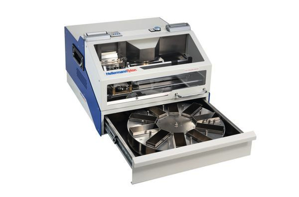 Ausgestattet mit einem innovativen Sortiersystem. Sortiermenge pro Behälter ist frei wählbar. Kapazität Sortiersystem: 400 Markierer. Kapazität pro Behälter: 40 Markierer. Der M-BOSS Compact Prägeautomat mit Organiser-System erbringt den zusätzlichen Vorteil eines innovativen Sortiersystems. Die Organisationseinheit in Karussell-Form besitzt 10 Behälter. Der Benutzer kann flexibel und komfortabel an der Oberseite der Maschine auswählen, welche Menge an Markierern pro Box einsortiert werden sollen. Die Karussellschublade ragt bei Öffnung 430 mm aus dem Prägeautomaten.