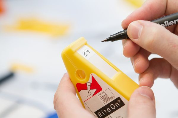 Kompakt zum einfachen verstauen in Hosen- oder Jackentaschen. Kosteneffektiv durch Wiederverwendbarkeit. Dispenser-Kante erlaubt das einfache Entfernen des Trägermaterials. Schutz vor Dreck und Feuchtigkeit sowie Verlängerung der Lebensdauer und Qualität der Etiketten dank des Dispensers. Die gewünschte Beschriftung wird im frei stehenden Sichtfenster des Spenders mit einem Markierstift (im „Starter-Pack“ enthalten) aufgetragen. Durch Ziehen an der austretenden Trägerfolie auf der Rückseite wird das beschriftete Etikett weitertransportiert und löst sich automatisch an der Kante des Spenders vom Trägermaterial. Das selbstklebende Etikett kann nun bspw. auf Leitungen durch leichtes Andrücken und umschlagen appliziert werden. Zur Beschriftung eignen sich die Markierstifte T82S und T82R.