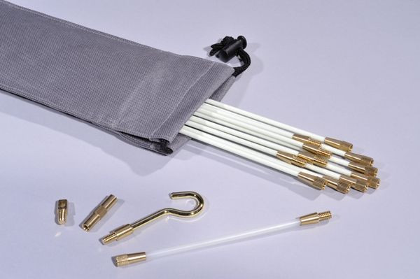 Multifunktionelles Werkzeug zur professionellen Kabelinstallation. Zeitsparende Kabelinstallation auch in schwierigsten Umgebungen. Glasfaserverstärkte Fiberglasstangen. Zugkraft bis 200 kg. Verschiedene Sets bestehend aus einer robusten Tasche und Zubehörteilen. Cable Scout+ ist ein multifunktionales Werkzeug zur professionellen Kabelinstallation, dass die zeitsparende Verlegung von Kabeln unter schwierigsten Bedingungen ermöglicht. Stangen aus glasfaserverstärktem Kunststoff (GFK) können dabei mit einem Kabelgewicht von bis zu 200 kg belastet werden. Das komplette System beinhaltet Glasfaserstangen, eine Vielzahl an nützlichen Zubehörteilen und eine robuste Tasche, in der alle Komponenten sicher verstaut werden können.