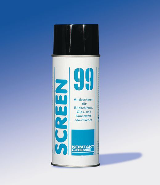 Kraftvoller Schaumreiniger. Mit Antistatik-Effekt. Standfester Aktivschaum. Löst auch starke Verschmutzungen. Verringerte Schmutzanziehung. Läuft nicht ab. SCREEN 99 - der starke Glas- und Bildschirmreiniger. Der Aktivschaum enthält hochwirksame Lösemittel, die auch stärkere Verschmutzungen schnell lösen. SCREEN 99 ist ideal geeignet zur schlierenfreien Reinigung von Glas- und Kunststoffoberflächen bei Bildschirmen, Scannern, Kopierern usw. Der Schaum ist standfest und läuft auch an senkrechten Oberflächen nicht ab.
