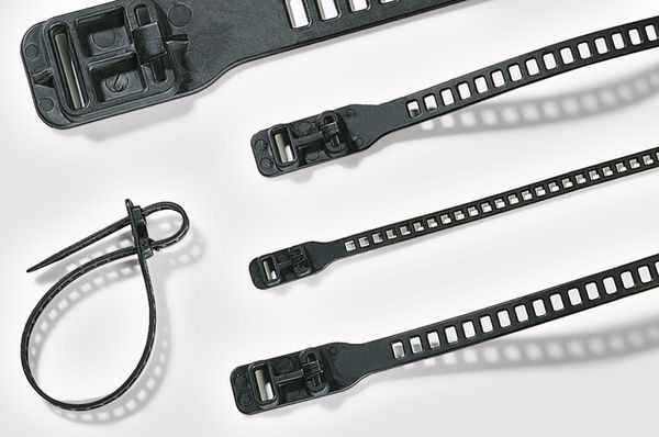Elastischer Kabelbinder mit gerundeten Kanten. Flexibel auch bei niedrigen Temperaturen bis -20 °C. Kann wieder geöffnet und erneut verwendet werden. Doppelter Verschlusskopf zur Parallelbündelung. Dehnspannung ermöglicht sehr festen Sitz auf dem Bündel. Gleichmäßige Druckverteilung auf dem Bündel. Sicherer Halt auch in vertikaler Position verhindert das Herausgleiten des Bündels. Langlebig beim Verbau im Innenbereich. Aufgrund des elastischen und reißfesten Materials eignen sich diese Kabelbinder besonders für die Bündelung und Fixierung von vibrierenden, beweglichen oder pulsierenden Leitungen und Schläuchen, wie zum Beispiel in den Bereichen Windenergie, Bau- und Agrarmaschinen sowie Robotersystemen. Als Wiederöffnungsbinder finden sich zahlreiche Anwendungen für temporäre Befestigung im Bühnen- und Messebau oder auf Musikveranstaltungen. Im Montagewagen sorgt dieser Kabelbinder für Ordnung.