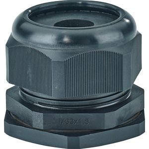 Für Innenräume und die ungeschützte Installation im Freien, mit Zugentlastung und Gegenmutter, aus Thermoplast, Schutzart: IP 65 / IP 67, schwarz ähnlich RAL 9005, Wandstärke bis 3 mm