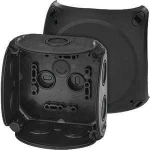 Kabelabzweigkasten aus hochwertigem Thermoplast. Für Aufputz-Anwendungen in Gebäuden oder die geschützte Installation im Freien. Mit Außenlaschen zur Befestigung und Deckelbefestigung über Schnellverschlüsse. Kabelabzweigkasten ohne Klemmen. Kabeleinführung über elastische Dichtmembranen in Gehäusewänden und Boden. Nachträglicher Einsatz von Kabelstutzen durch Entfernen der Dichtmembrane möglich. Mit Deckelhalteband.