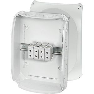 Kabelabzweigkasten aus hochwertigem Thermoplast. Für Aufputz-Anwendungen in Gebäuden oder die geschützte Installation im Freien. Mit Außenlaschen zur Befestigung und Deckelbefestigung über Schnellverschlüsse. Mit innovativer Klemmentechnik bis 50 mm², 4-polig. Kabeleinführung über metrische Vorprägungen in Gehäusewänden und Boden. Anbau-Kabelstutzen gesondert bestellen.