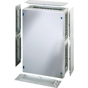 Gehäuse mit Tür für den Bau von Installationsverteilern bis 250 A für die Bedienung durch Laien nach IEC 61439-3. Offene Gehäusewände für die Kombination oder als Einzelgehäuse mit Verschlussplatten. Aus hochwertigem Polycarbonat, schutzisoliert. Schnelle Gehäuseverbindung durch Steckverbinder und integrierte Dichtungen. Große Wanddurchführungen für die elektrische Verbindung der Gehäuse untereinander. Kabeleinführung über Flansche. Wandbefestigung direkt am Gehäuse, über Außenlaschen oder mit Montageschienen. Leergehäuse mit nicht durchsichtiger Tür und Türverschluss mit Werkzeugbetätigung. Für den Einbau von Geräten auf Montageplatte oder DIN-Tragschiene, Einbaumaße B 306 x H 486 x T 140 mm. Max. Einbautiefe bei eingebauter Montageplatte 136 mm, bei eingebauter Tragschiene 125 mm. Die Plombiervorrichtung für die Türplombierung muss separat bestellt werden.