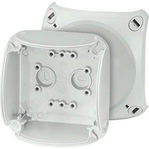Kabelabzweigkasten aus hochwertigem Thermoplast für die ungeschützte Installation im Freien oder Aufputz-Anwendungen in Gebäuden. Beständig gegen Witterungseinflüsse wie UV-Belastung durch Sonneneinstrahlung, geschützt gegen Regenwasser, temperaturbeständig und schlagfest. Deckelbefestigung über Schnellverschlüsse. Mit Außenlaschen zur Befestigung. Seewasserbeständig, für Offshore-Anwendungen. Mit Zulassung für die Installation auf Schiffen. Kabelabzweigkasten ohne Klemme. Gehäusewände ohne Vorprägungen. Kabeleinführungen können individuell gebohrt werden. Wandfläche nutzbar für Leitungseinführung max. M 20. Mit Deckelhalteband.