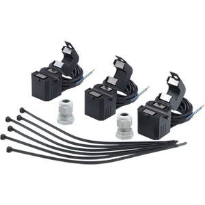 Stromwandler-Set mit 3 teilbaren Umbaustromwandlern, 125/1 A (Genauigkeitsklasse 1). Zum Einbau an isolierten Leitern oder Verdrahtungsband. Mit Messleitungen.