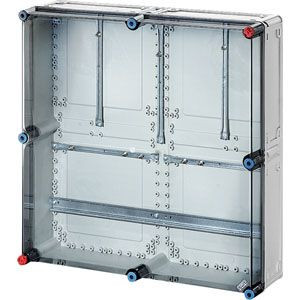 Gehäuse für den Bau von Energie-Schaltgerätekombinationen bis 630 A oder als Einzelgehäuse. Aus hochwertigem Polycarbonat schutzisoliert. Wanddurchführungen mit großen Öffnungen für die elektrische Verbindung der Gehäuse untereinander. Kabeleinführung an allen Gehäusewänden über metrische Vorprägungen oder Anbauflansche. Gehäuse zur Wandbefestigung auch über Außenlaschen oder mit Montageschienen. Zählergehäuse für Zähler mit Dreipunktbefestigung, inklusive 3 Zählerbefestigungen und Tragschiene. Max. Einbautiefe 146 mm. Kabeleinführung nur über Anbauflansche möglich. Deckelverschlüsse für Werkzeugbetätigung, zweifach plombierbar. Einsatz im ungemessenen Bereich nach Absprache mit örtlichem Netzbetreiber.