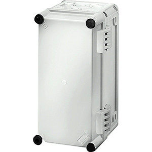 Gehäuse für den Bau von Energie-Schaltgerätekombinationen bis 630 A oder als Einzelgehäuse. Aus hochwertigem Polycarbonat schutzisoliert. Wanddurchführungen mit großen Öffnungen für die elektrische Verbindung der Gehäuse untereinander. Kabeleinführung an allen Gehäusewänden über metrische Vorprägungen oder Anbauflansche. Gehäuse zur Wandbefestigung auch über Außenlaschen oder mit Montageschienen. Leergehäuse mit scharniertem nicht durchsichtigem Deckel. Einbaumaße B 125 x H 275 x T 150 mm für den Einbau von Geräten auf Montageplatte oder DIN-Tragschiene. Max. Einbautiefe bei eingebauter Montageplatte 146 mm, bei eingebauter Tragschiene 135 mm. Deckelverschlüsse mit Werkzeugbetätigung.