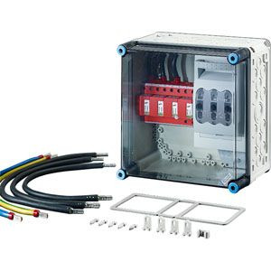 Erweiterungsset, anschlussfertig, mit Wanddichtung mit konfektionierten Anschlussleitungen mit Sicherung NH 00,3 x 160 A, 1xAC-Überspannungsableiter Typ 1, für 5-Leiter-Netz (TN-S oder TT), Defektanzeige durch rote Markierung