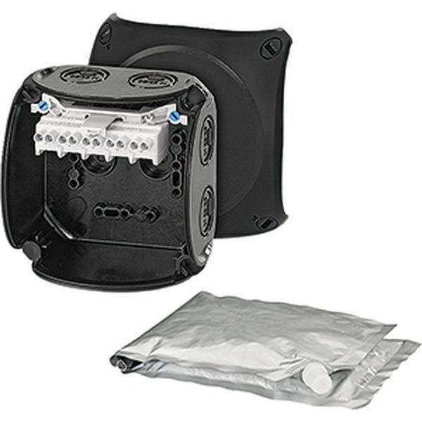 | Kurzbeschreibung | Kabelabzweigkasten 1,5-4 qmm, 3phasig, 6 qmm 1phasig, 5polig, schwarz |