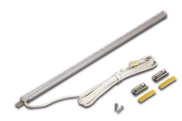 Steckbarer LED-Stab ohne Dunkelzonen im Aluminiumprofil, Lichtfarbe warm weiß ca. 3000K, einfache Montage durch beiliegende Clipbefestigung, Anschlussleitung einfach anstecken und bis zu 2,4m die Stäbe zusammenstecken bzw. dann jeweils einen Stick SE (mit seitlicher Einspeisung) für unendliche Lichtbänder verwenden, optionales Zubehör: dimmbarer Trafo mit Funkfernbedienung oder 1-10V Dimmer, Glaskantenprofil zur seitlichen Lichteinspeisung von Glasscheiben, Tast-Schalter, Abdeck- und Einfräsprofil zum kompletten Einbau in Holz, Lichtvoutenprofil zum flächenbündigen Einbau in Gipskarton