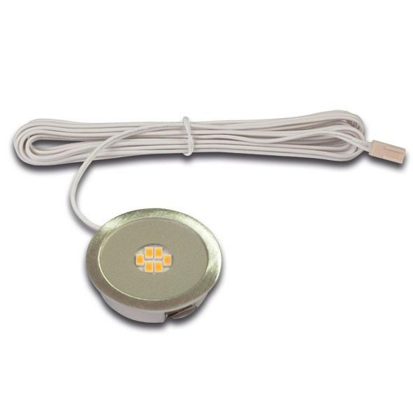 LED-Einbaustrahler, Gehäuse Aluminium, Anschlussleitung 2,5m mit LED 24-Stecker, Lichtfarbe neutral weiß ca. 4000K, schnelle und einfache Montage durch Rasthaken, optionales Zubehör: dimmbarer Trafo mit Funkfernbedienung oder 1-10V Dimmer, Montagefeder zum Aufschrauben für den sicheren Halt in Leichtbaudecken