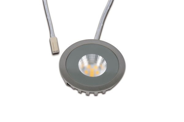 LED-Einbaustrahler, Gehäuse Aluminium, Anschlussleitung 2,5m steckbar mit LED 24-Stecker, Lichtfarbe neutral weiß ca. 4000K, schnelle und einfache Montage durch Rasthaken, optionales Zubehör: Montagefeder zum Aufschrauben für den sicheren Halt in Leichtbaudecken