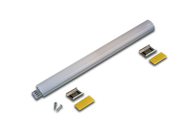Steckbarer LED-Stab ohne Dunkelzonen im Aluminiumprofil, Lichtfarbe neutral weiß ca. 4000K, einfache Montage durch beiliegende Clipbefestigung, Anschlussleitung einfach anstecken und bis zu 3m die Stäbe zusammenstecken bzw. dann jeweils einen Stick SE (mit seitlicher Einspeisung) für unendliche Lichtbänder verwenden, optionales Zubehör: Dimm-Controller mit Funkfernbedienung, WiFi App, DALI oder 1-10V Dimmer, Tast-Schalter, Abdeck- und Einfräsprofil zum kompletten Einbau in Holz