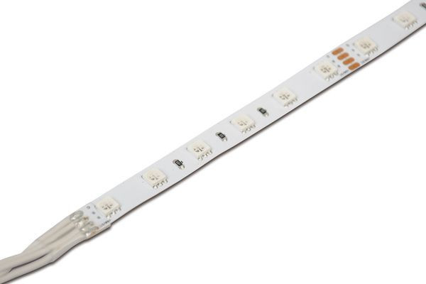 Flexibles LED-Band auf Rolle mit Farbwechsel, schnelle und einfache Montage durch das bereits aufgebrachte doppelseitige 3M Klebeband, Anschlussleitung einfach anstecken, das Band kann alle 167mm abgeschnitten werden (siehe Markierung). Anschließend kann das Band ohne zu löten mit dem Verbindungsclip oder den Leitungen wieder kontaktiert werden, optionales Zubehör: Glaskantenprofil zur seitlichen Lichteinspeisung von Glasscheiben, Eckprofil, Abdeckprofile, Einfräsprofile oder Montageprofile, Controller mit Funkfernbedienung DALI, ZigBee oder WiFi App