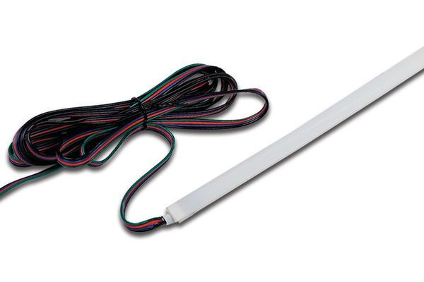 Flexibles LED-Band auf Rolle mit Farbwechsel, mit Flächenlicht ohne sichtbare LED Punkte, schnelle und einfache Montage durch das bereits aufgebrachte doppelseitige 3M Klebeband, Anschlussleitung einfach anstecken, das Band kann alle 50mm abgeschnitten werden (siehe Markierung). Zubehör: Controller mit Funkfernbedienung DALI, ZigBee oder WiFi App