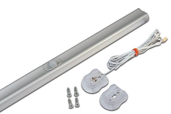 LED-Kleiderstangenleuchte mit Bewegungsmelder, Gehäuse Alu, individuell kürzbar, Anschlussleitung 2,5m mit LED 24-Stecker, Lichtfarbe neutral weiß ca.4000K