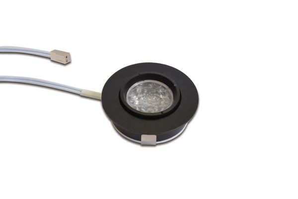 Fokussierbarer LED-Einbaustrahler, Gehäuse Aluminium, Anschlussleitung 2,5m mit LED 24-Stecker, Lichtfarbe warm weiß ca. 3000K, schnelle und einfache Montage durch Rasthaken