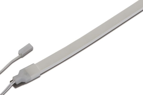 Flexibles LED-Band auf Rolle, Lichtfarbe extra warm weiß ca. 2700K mit Flächenlicht ohne sichtbare LED Punkte, schnelle und einfache Montage durch das bereits aufgebrachte doppelseitige 3M Klebeband, inkl. Anschlussleitung 2,5m mit LED 24-Stecker, das Band kann alle 50mm abgeschnitten werden (siehe Markierung), optionales Zubehör: Dimm-Controller mit Funkfernbedienung, 1-10V, DALI, ZigBee, Sonar oder WiFi Steuerung