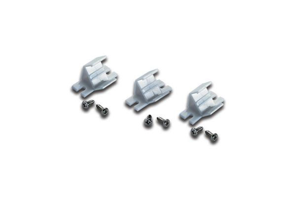 Montageclip in Kunststoff-Ausführung, Schrauben beiliegend, zum einfachen Aufrasten der Leuchte bei Eckmontage 45°