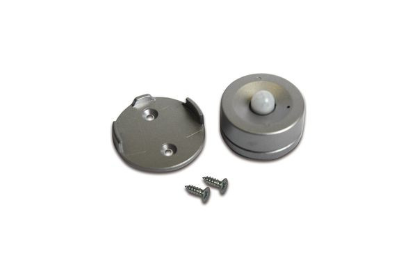 Funk Sensorkopf chrom-matt als Erweiterung zu Bewegungsmelder PIR 3, es können bis zu 4 Sensorköpfe angelernt werden, mit Batterie CR 2032 (Lebensdauer 1,5 bis 2 Jahre) mit Clipsockel zum Schrauben oder Kleben, Nachlaufzeit von 3 Minuten, Erfassungswinkel 100°, Erfassungsbereich 1-3m