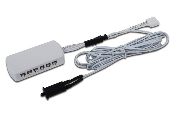 Türkontaktschalter schwarz, für 12mm Bohrung, Anschlussleitung 2,5m mit LED 24-Stecker, Schaltleitung 2,5m mit 6-fach Verteiler LED 24