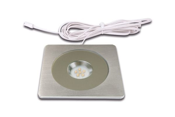 LED-Einbaustrahler, Gehäuse Aluminium, Anschlussleitung 2,5m mit LED 24-Stecker, Lichtfarbe warm weiß ca. 3000K, schnelle und einfache Montage durch Rasthaken, optionales Zubehör: Dimm-Controller mit Funkfernbedienung, WiFi App, DALI oder 1-10V Dimmer, Montagefeder zum Aufschrauben für den sicheren Halt in Leichtbaudecken