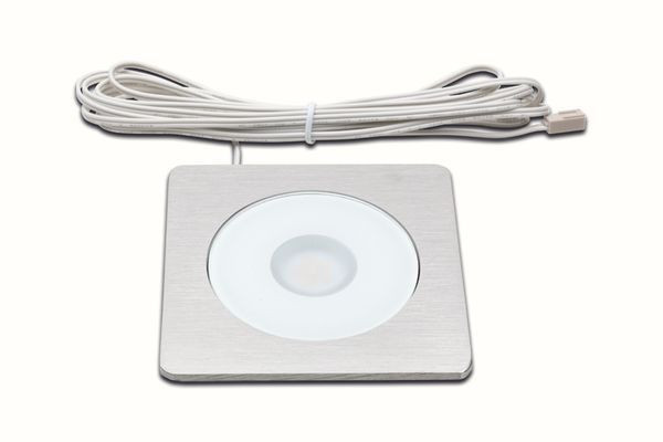 LED-Einbaustrahler, Gehäuse Aluminium, Anschlussleitung 2,5m mit LED 24-Stecker, Lichtfarbe neutral weiß ca. 4000K, schnelle und einfache Montage durch Rasthaken, optionales Zubehör: Dimm-Controller mit Funkfernbedienung, WiFi App, DALI oder 1-10V Dimmer, Montagefeder zum Aufschrauben für den sicheren Halt in Leichtbaudecken