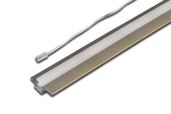 LED Up + Down für 19mm Holzböden, Gehäuse Alu in edelstahloptik eloxiert, Anschlussleitung mittig 2,5m mit LED 24-Stecker, Lichtfarbe warm weiß ca. 3000K, optionales Zubehör: Dimm-Controller mit Funkfernbedienung, WiFi App, DALI oder 1-10V Dimmer