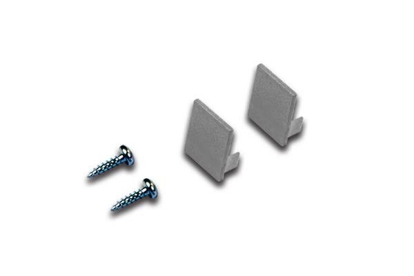 Stirndeckel LED Aufbauprofil, lackiert in alu eloxiert, Öffnung für Anchlussleitung ausknipsbar, 2er Set incl. Befestigungsschrauben