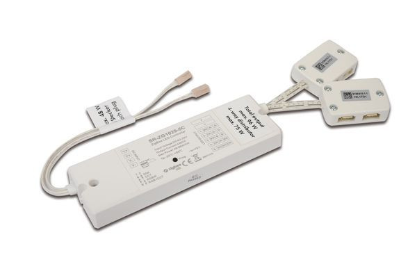 ZigBee-Controller zum Schalten und Steuern von 24V RGB Leuchten, Steckerfertig und optional, für jede Neuinstallation oder nachträgliche Erweiterung des bestehenden Systems, integrierbare ZigBee Smart Home Lösung, Anschlussleitung mit zwei LED 24-Steckern und 4-fach Verteiler für die Leuchten