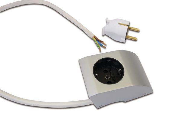 Steckdose zur Montage an beliebiger Stelle über der ModuLite, Anschlussleitung 1,8m mit Aderendhülsen zur nachträglichen Montage des beiliegenden Schutzkontakt-Steckers