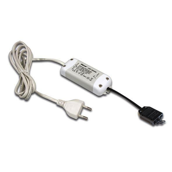 Elektronischer Sicherheitstransformator 350mA, Netzanschlussleitung 2m mit Eurostecker, mit 3-fach Verteiler, max. zulässige Länge der Sekundärleitungen 5m