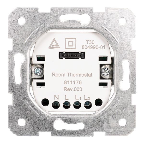 Zum Einbau in UP und Hohlwanddosen, Befestigung durch Befestigungskrallen,Thermostat Einsatz für analoge (90961060-DE) und digitale (90961062-DE) Temperaturregler Aufsätze, elektronisch für Heiz- oder Kühlanwendungen, Temperaturbereich +5°C bis +30°C, Schaltdifferenz 1K, Einsatz zur Montage in Schalterdose, mit Schraubklemmen, 230 V AC 50 Hz, Schaltkontakt 1 Öffner 5A und 1 Schließer 10A