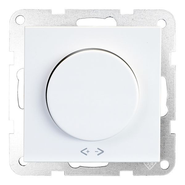 LED Dimmer Einsatz Druck Wechsel Phasenanschnittdimmer (RL), 2-Leiter-Einsatz, inkl. Dimmerabdeckung mit Drehknopf 55x55 mm, Farbe weiß, 230 V~, 6 ? 100 W/VA, für dimmbare LEDs, 230 V Glüh- und Halogenlampen, Halogenlampen 12 V mit konventionellem und elektronischem Trafo,mit Potentiometer für Minimalhelligkeit, Überspannungsschutz und Feinsicherung T1.6H
