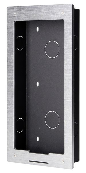 Robuster Unterputz-Aluminiumrahmen inkl. UP-Gehäuse zur Aufnahme der Türstationen AP 3-4 Fam. und AP 1-2 Fingerprint (FP). Geeignet für Senkrechtmontage, Abmessungen 267 x 130 x 45 mm