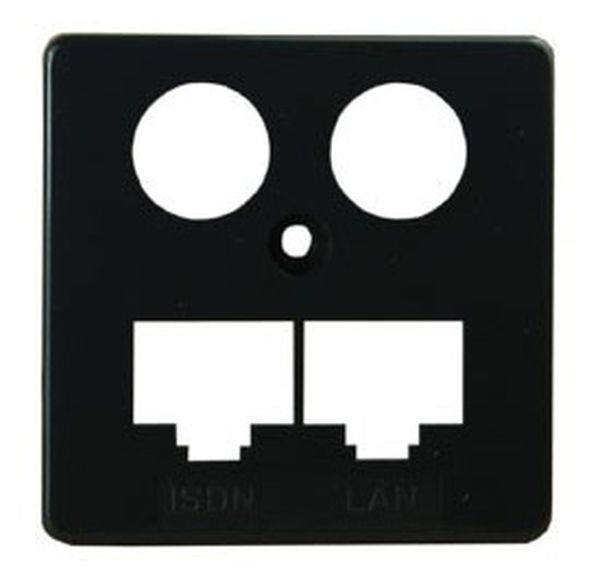 Zentralplatte zur Abdeckung der classic Basisdose, bestückt mit LAN/ISDN Kommunikationsmodul, mit oder ohne Koaxmodul, 50x50mm, anthrazit ähnlich RAL 7024